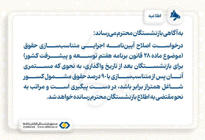 درخواست اصلاح آییننامه اجرایی متناسبسازی حقوق برای بازنشستگان بعد از تاریخ واگذاری
